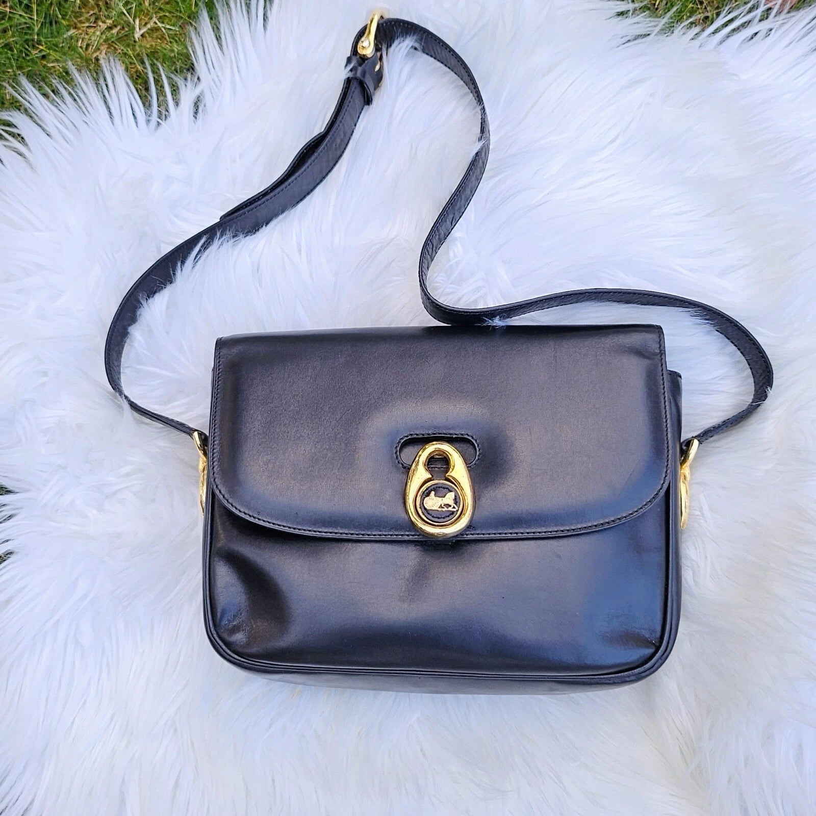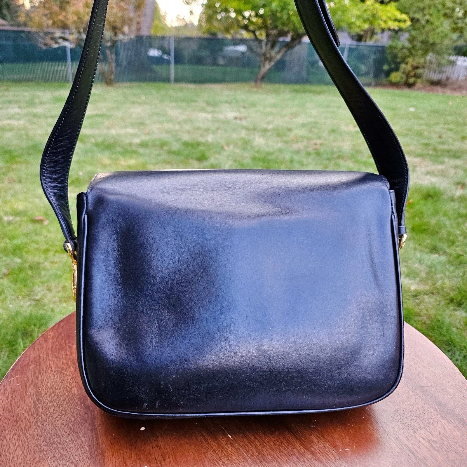 Vintage CELINE Horse Carriage Black Italy Leather Shoulder Bag