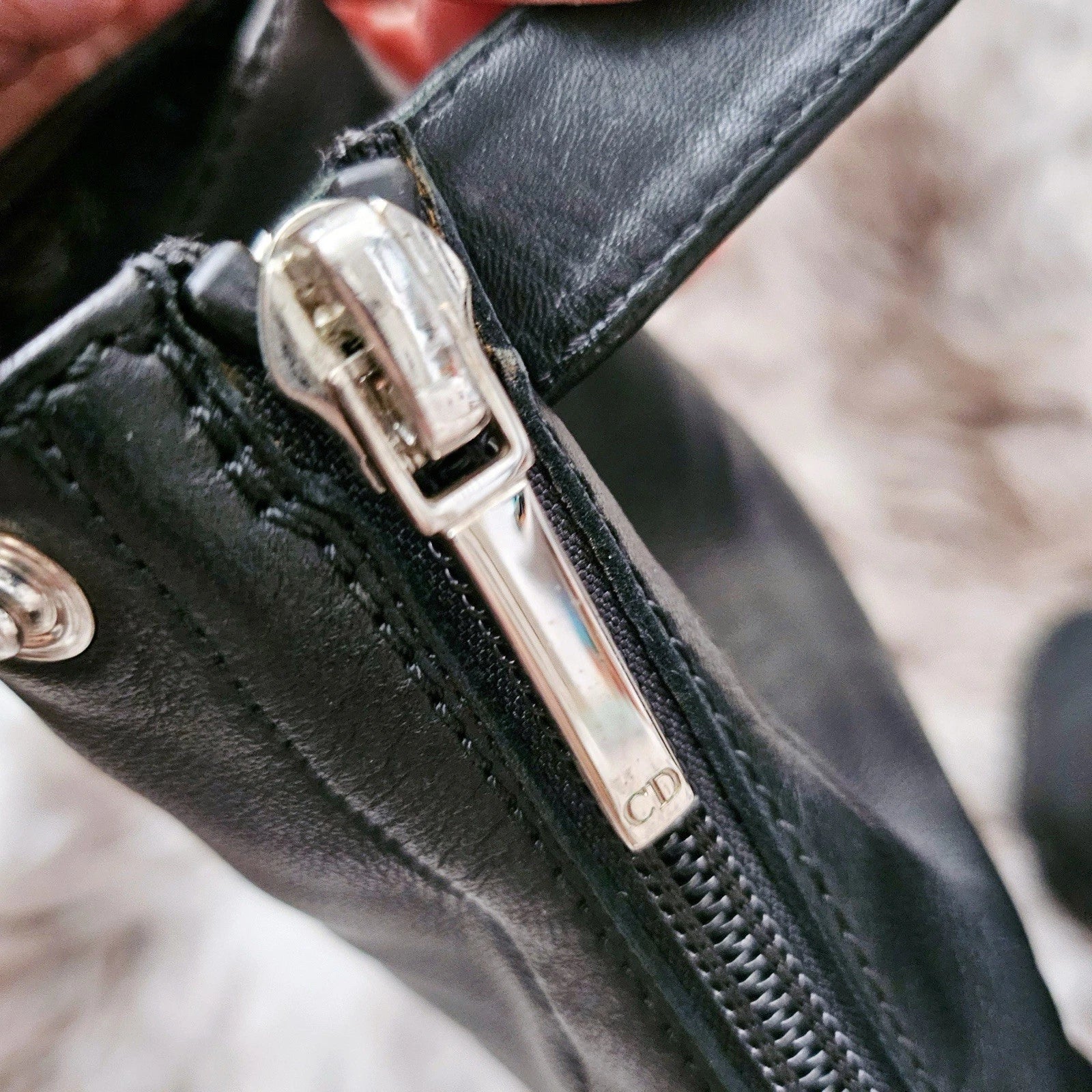 These stylish CD booties feature a sleek black color and are made of high-quality leather, showcasing the luxury and elegance characteristic of the Dior brand.