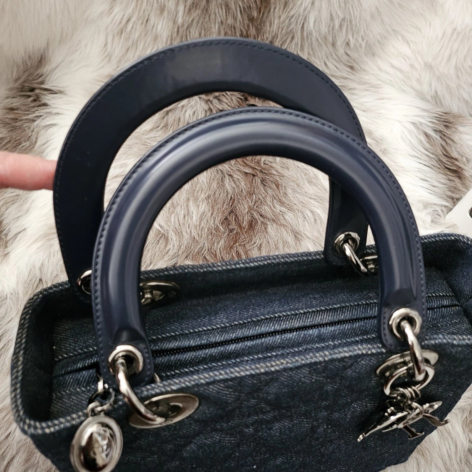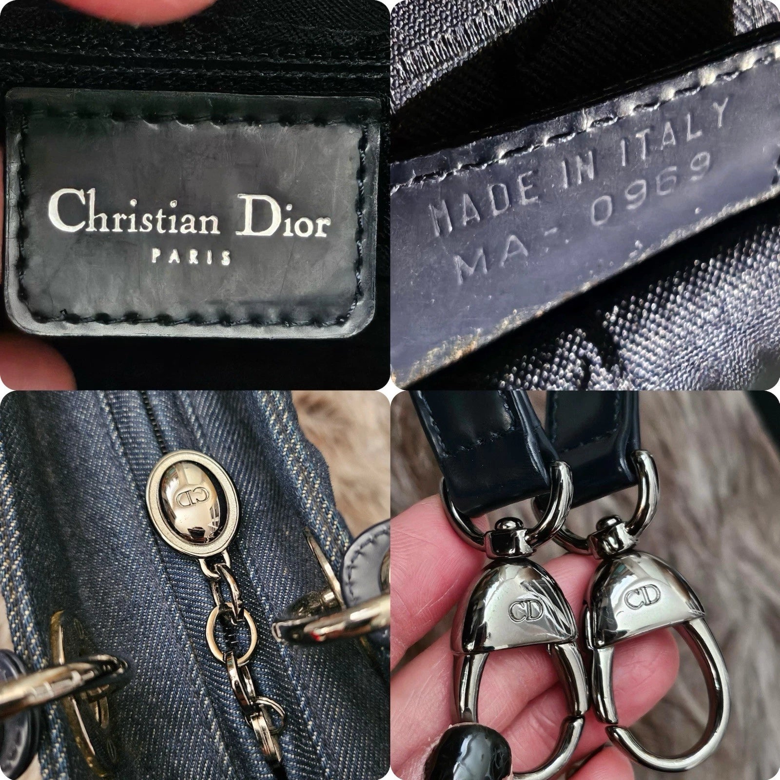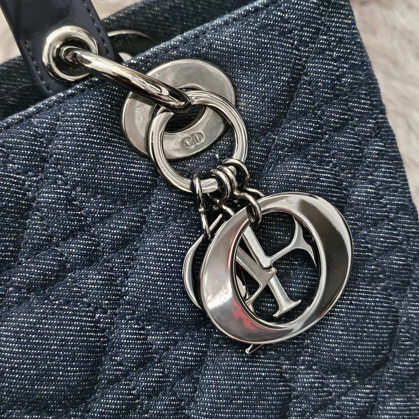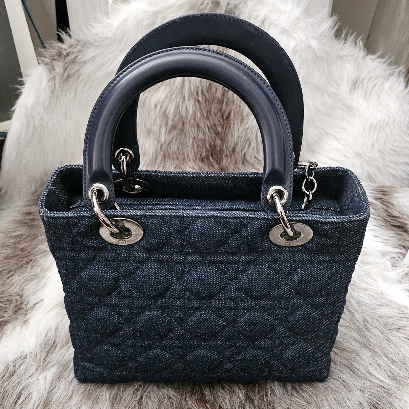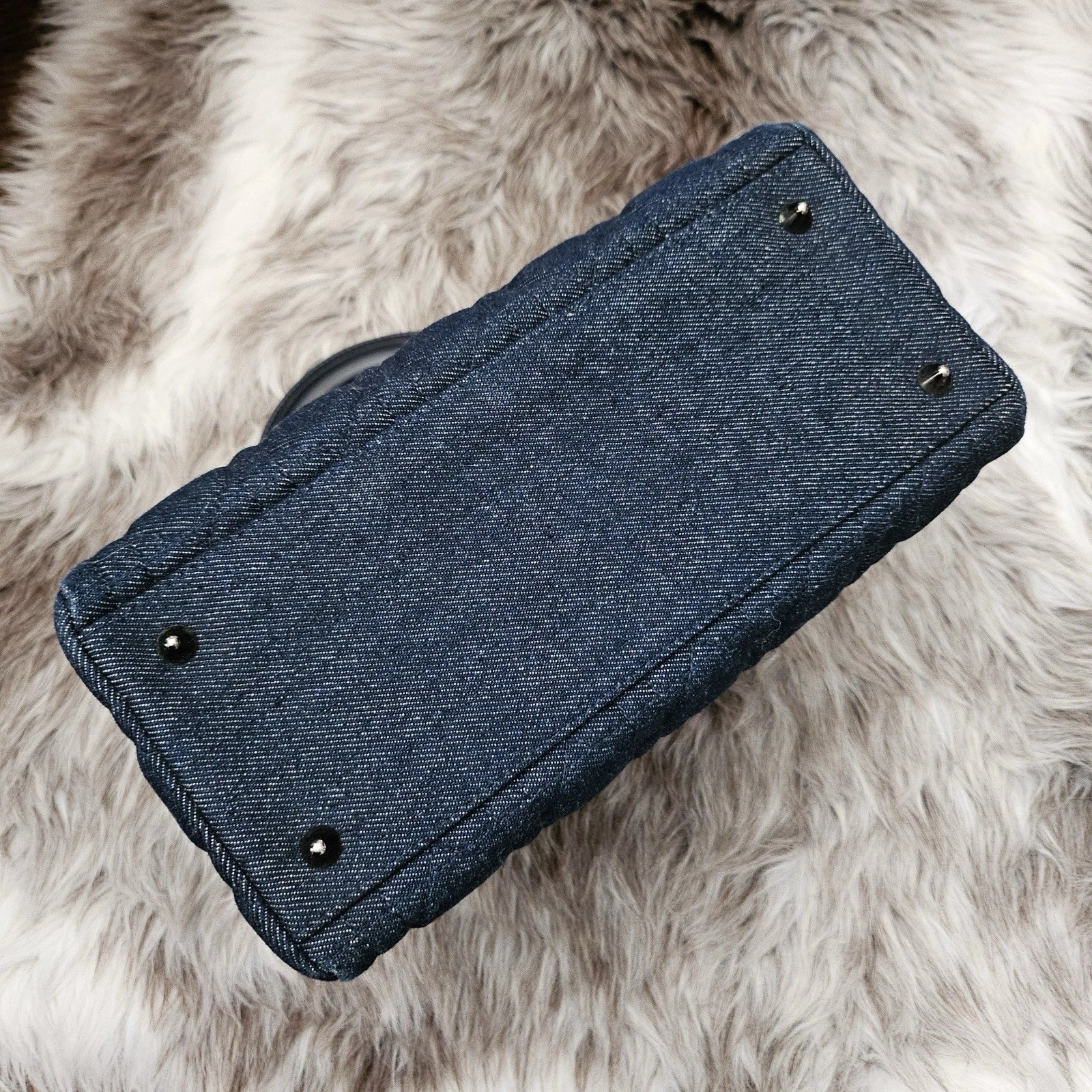 RARE Vintage CHRISTIAN DIOR Blue Cannage Quilted Denim Medium Lady Dior Bag