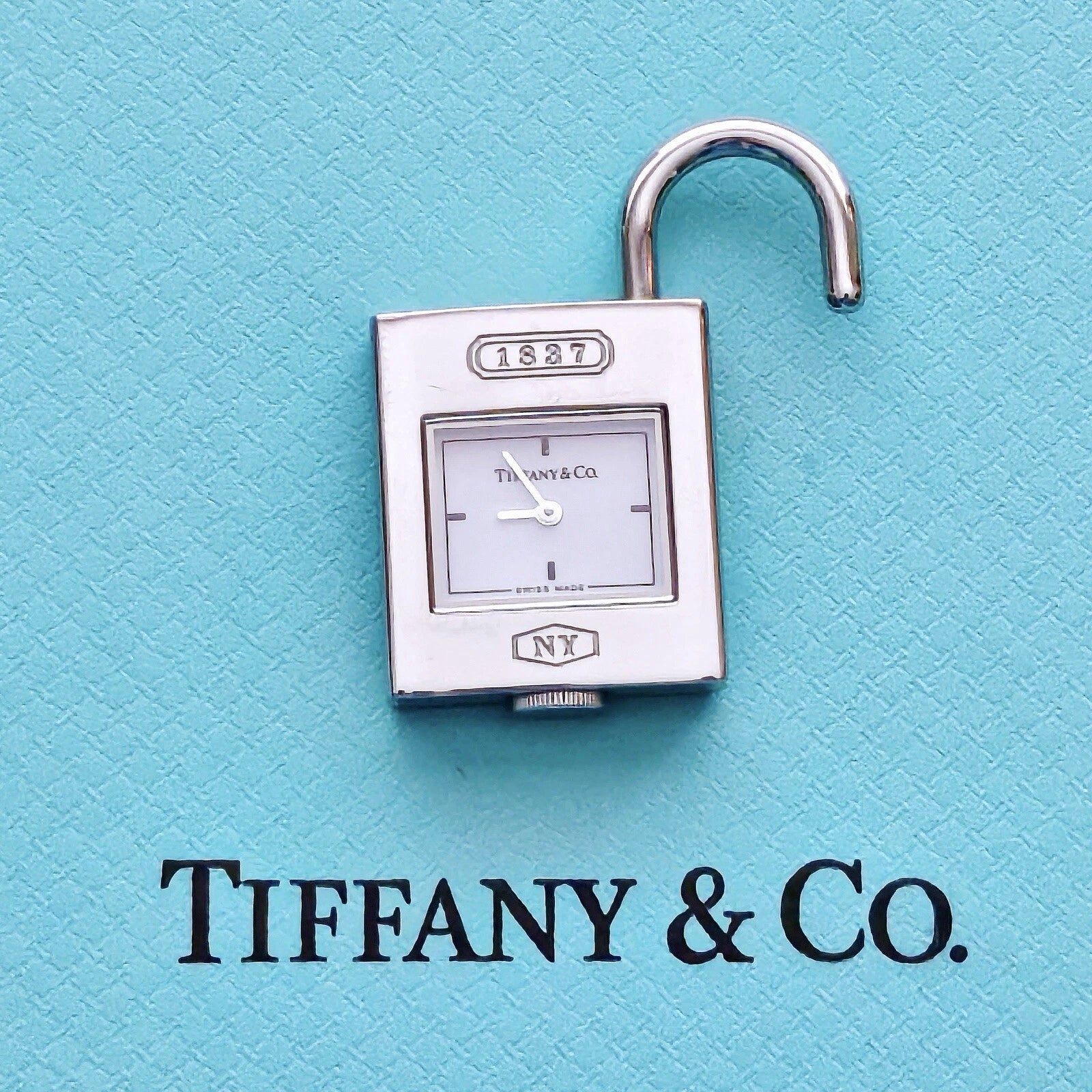 Tiffany & Co. 1837 White Dial Padlock Stainless Steel Charm Pendant Swiss Watch