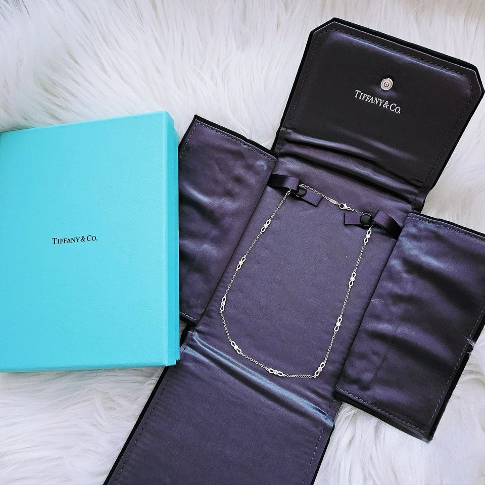 This is a beautiful and elegant vintage winged bow station diamond necklace from Tiffany & Co. Rare and Hard to find.