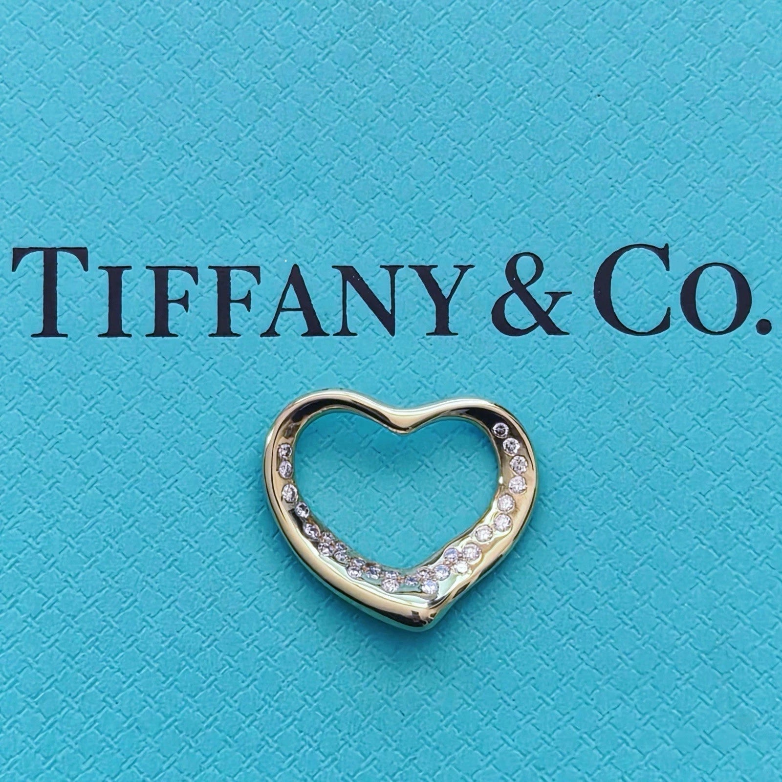 Tiffany & Co. Elsa Peretti 18K Gold Diamond Open Heart 29 Diamonds Pendant