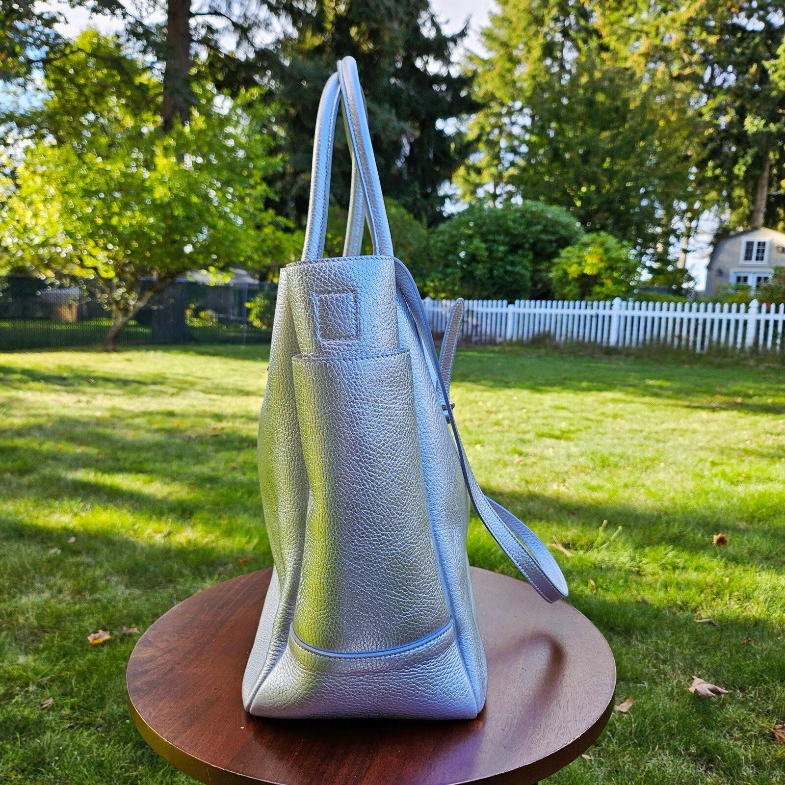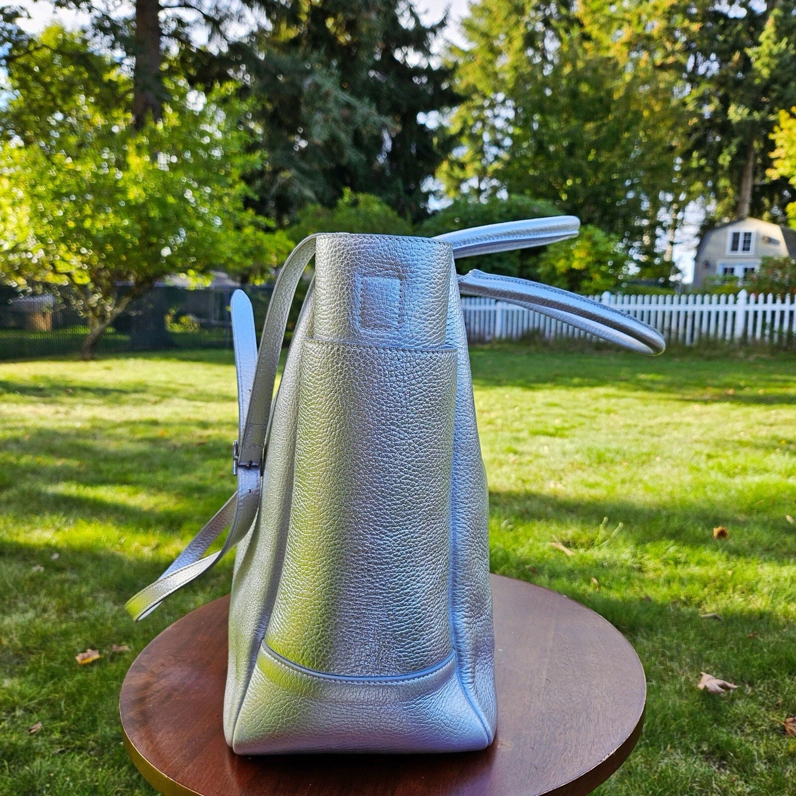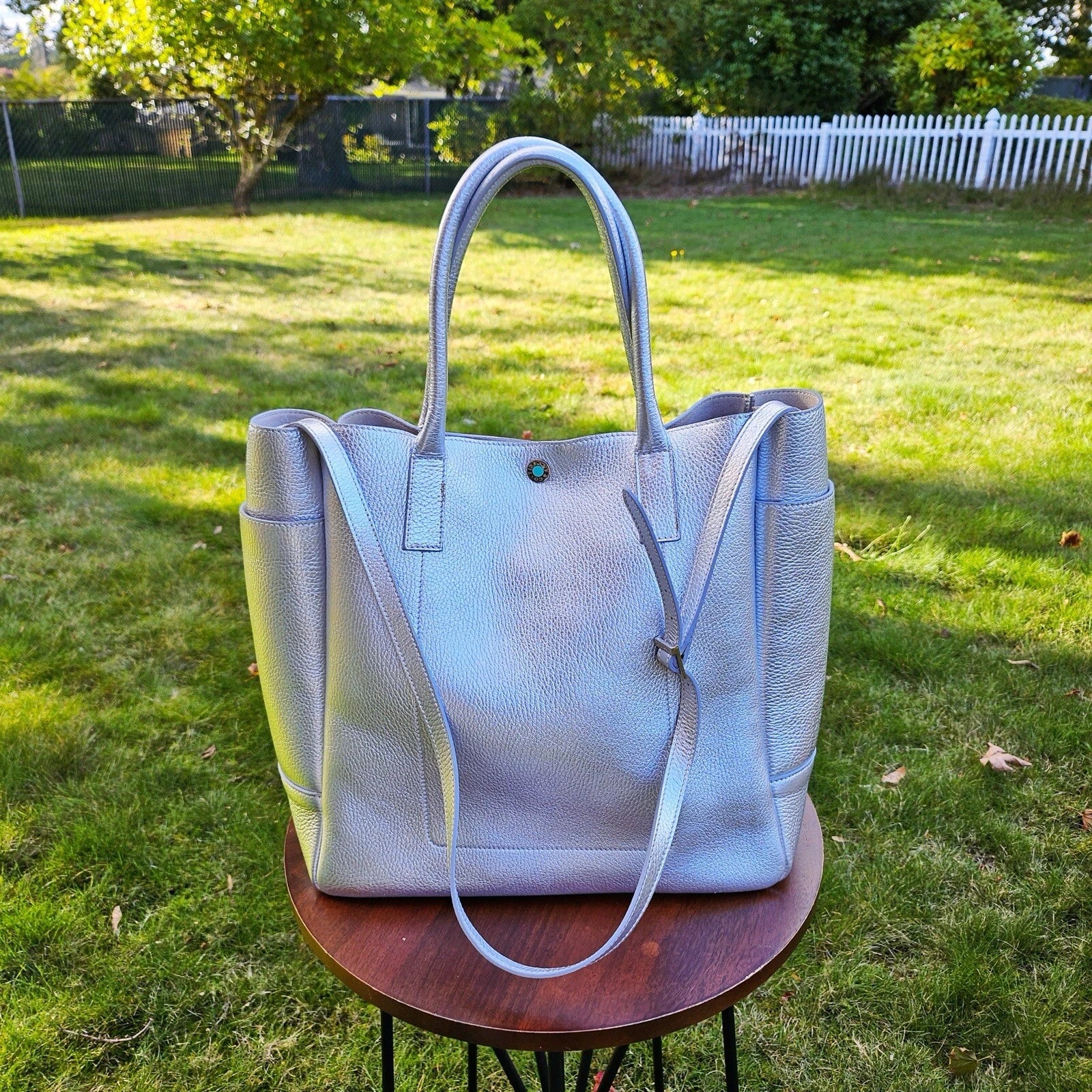 RARE Retired Tiffany & Co. Riley Pebbled Metallic Silver Leather Large Tote Bag