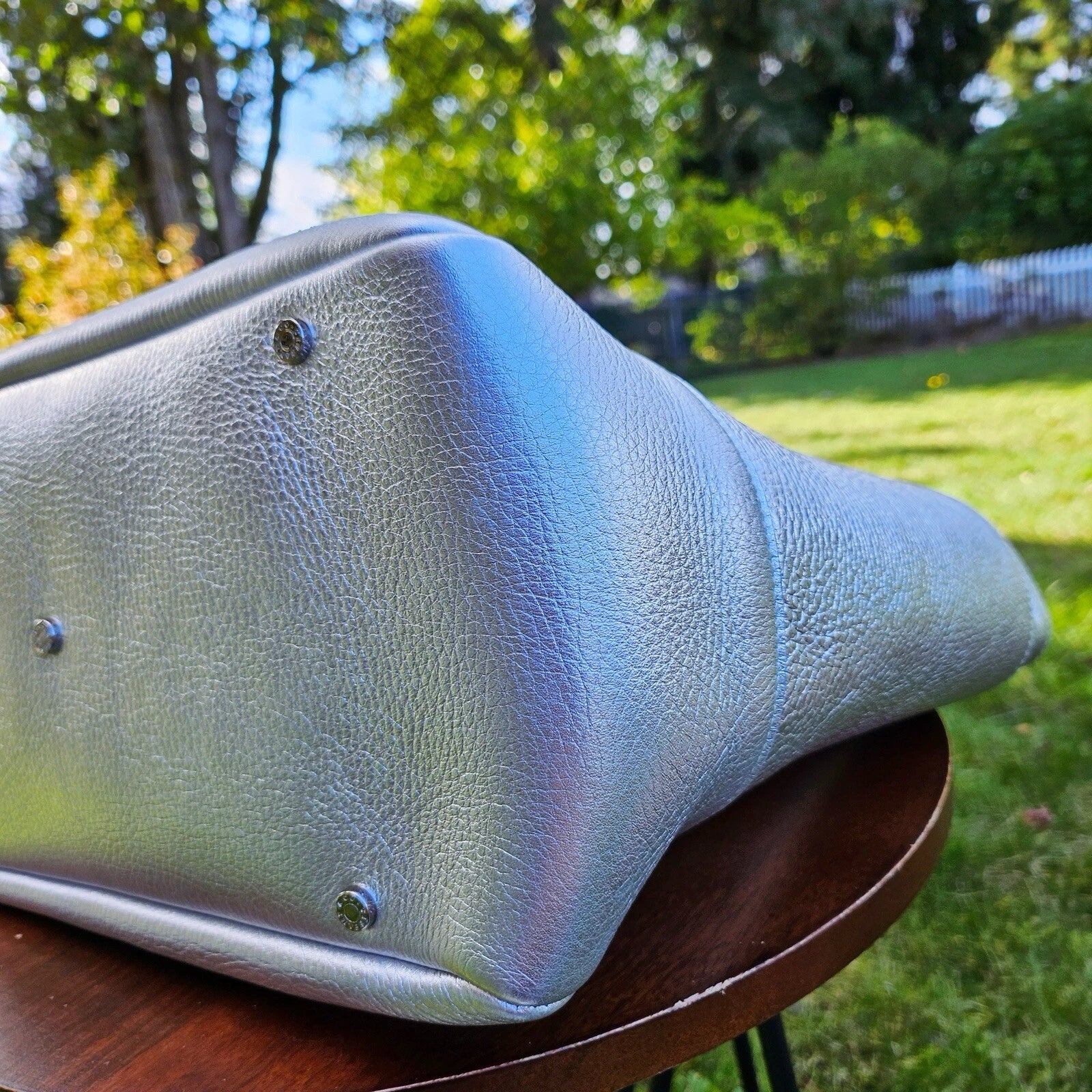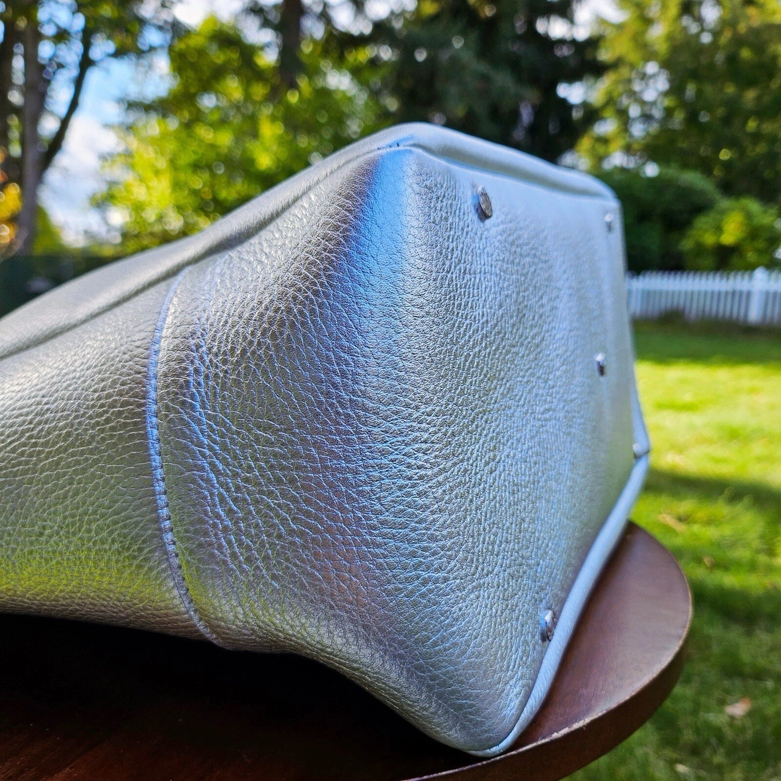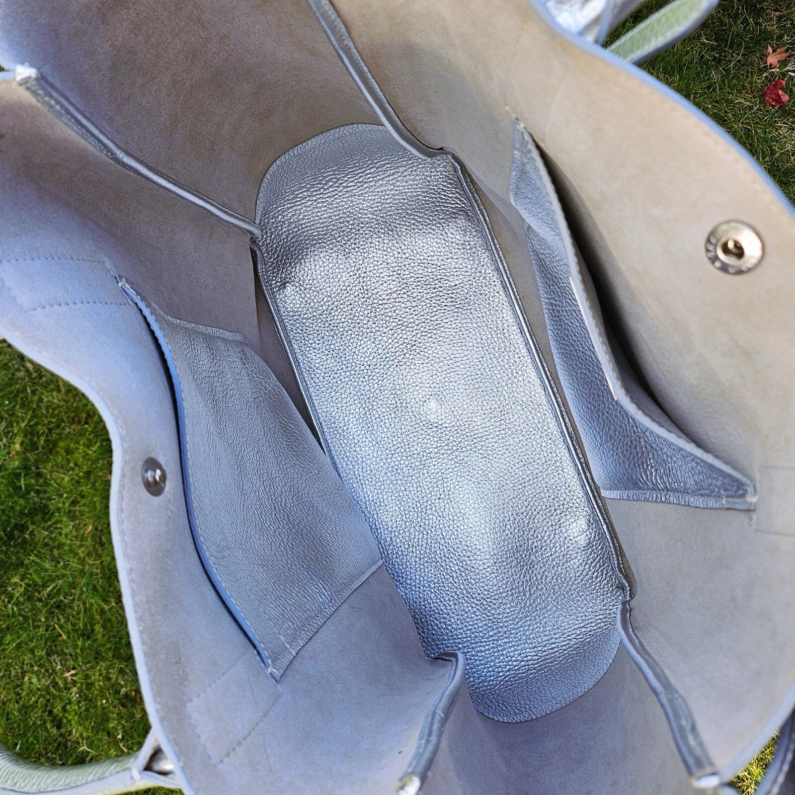 RARE Retired Tiffany & Co. Riley Pebbled Metallic Silver Leather Large Tote Bag