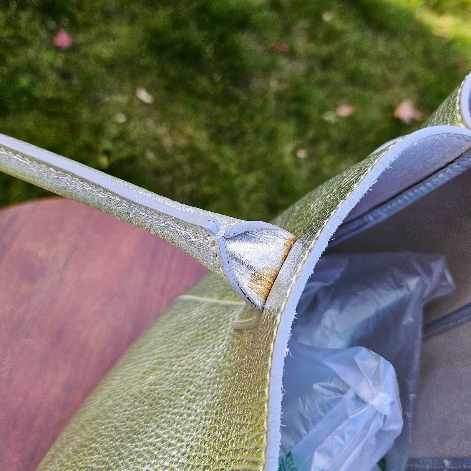 In good condition with signs of wear as pictured. Gently used along the edges, but pretty clean inside with no color transferred mark. The shape has relaxed somewhat due to use, but there's still plenty of life left in it.