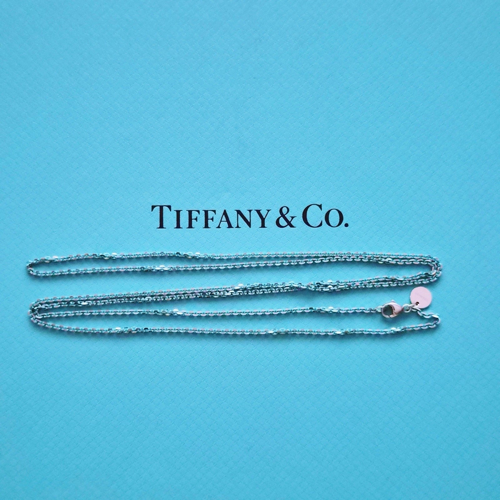 In good pre-loved condition with gentle wear from normal use. The enamel remains vibrant and the chain drapes elegantly when worn. Perfect to layer or wear on its own for a sleek Tiffany look.