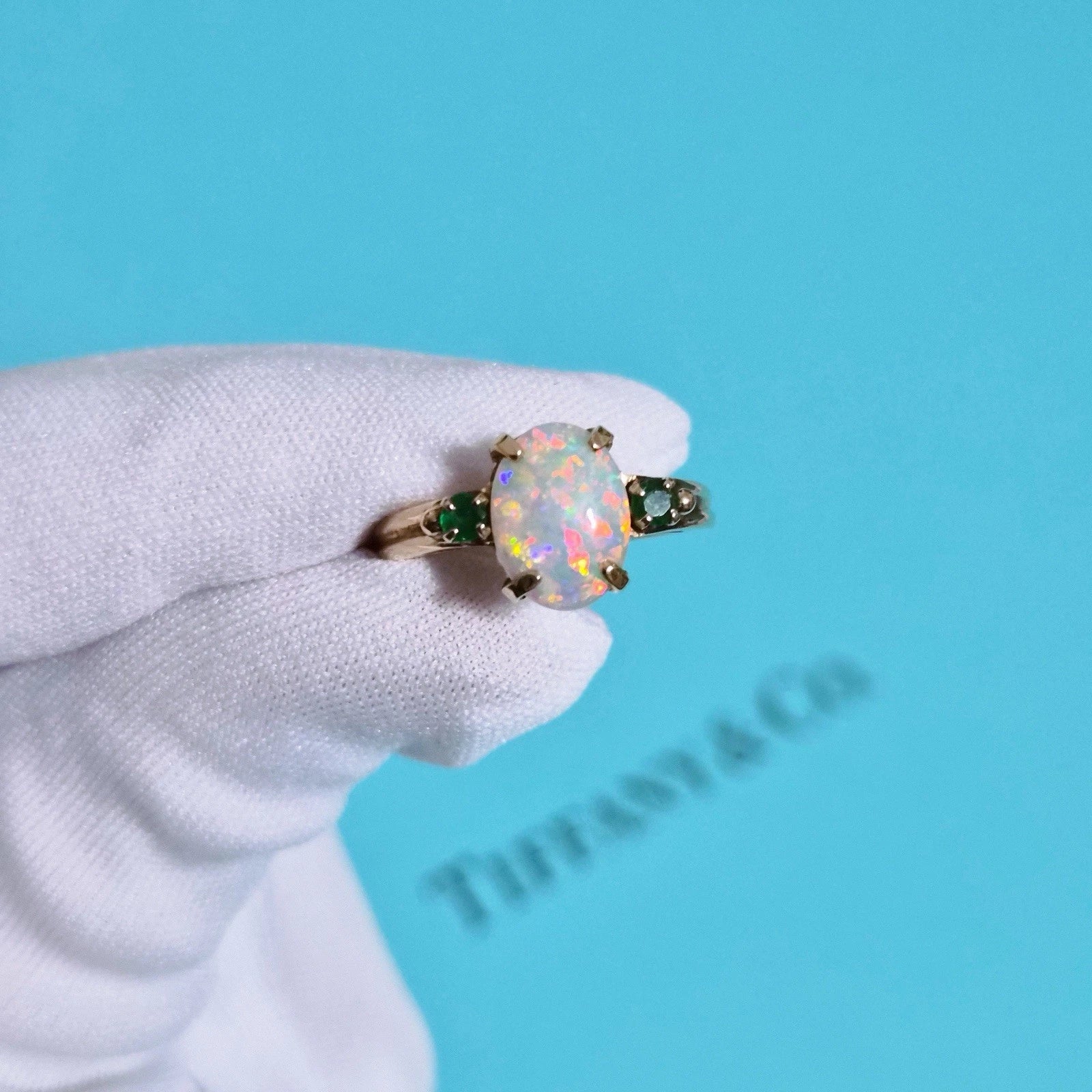 RARE Vintage Tiffany & Co. Opal Emerald Ring 14k Yellow Gold Oval Cabochon Ring