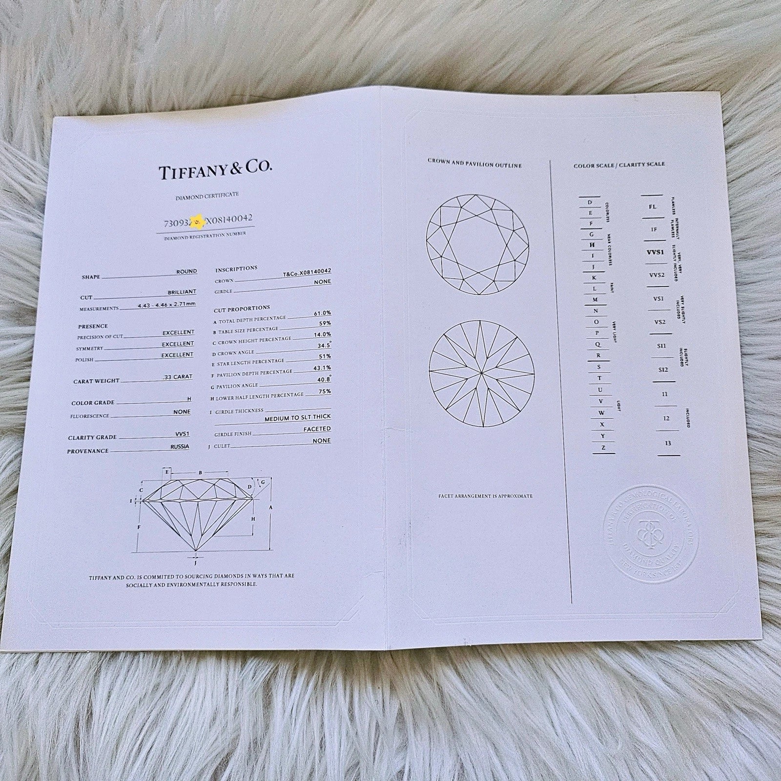 $3,500 Tiffany & Co. Solitaire Platinum Diamond Engagement Ring .33 TCW H VVS1