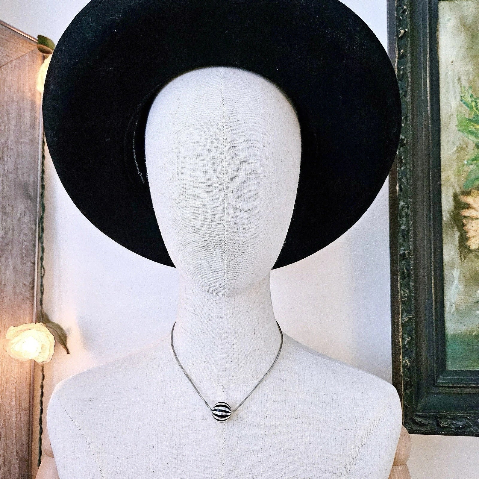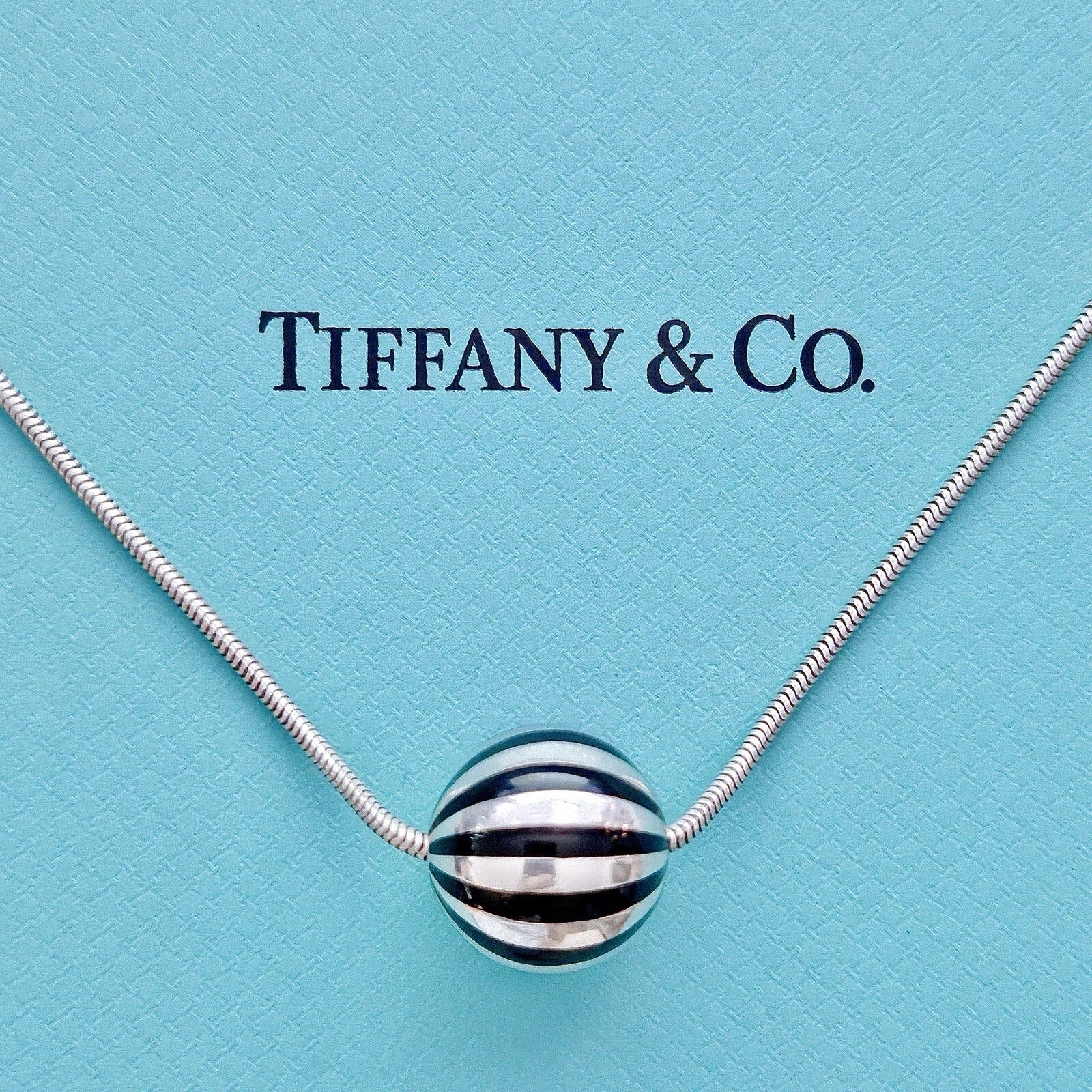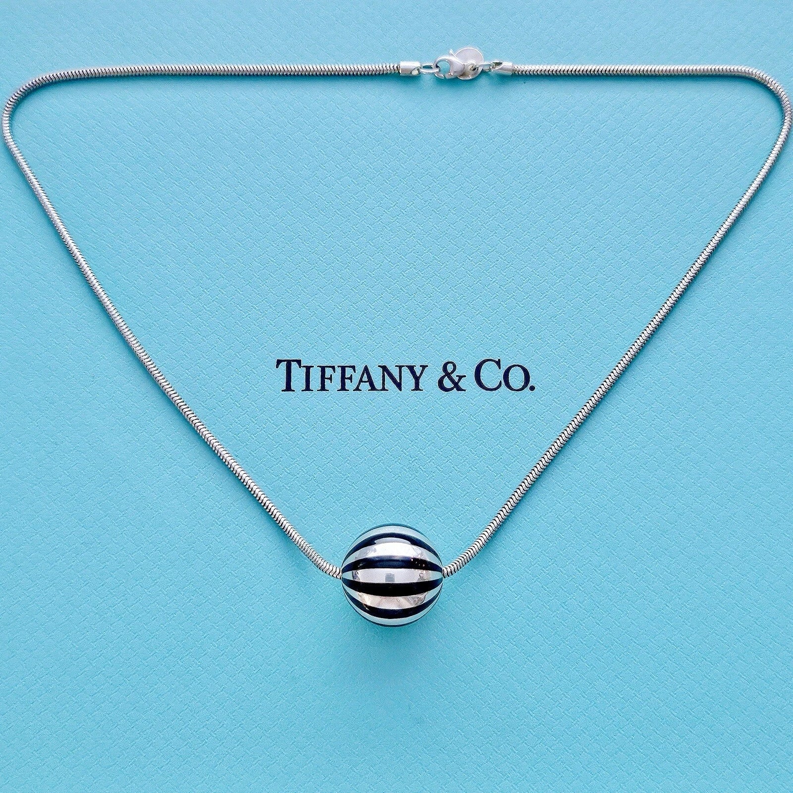 RARE Vintage Tiffany & Co. Black Enamel Sterling Silver Stripe Ball Necklace