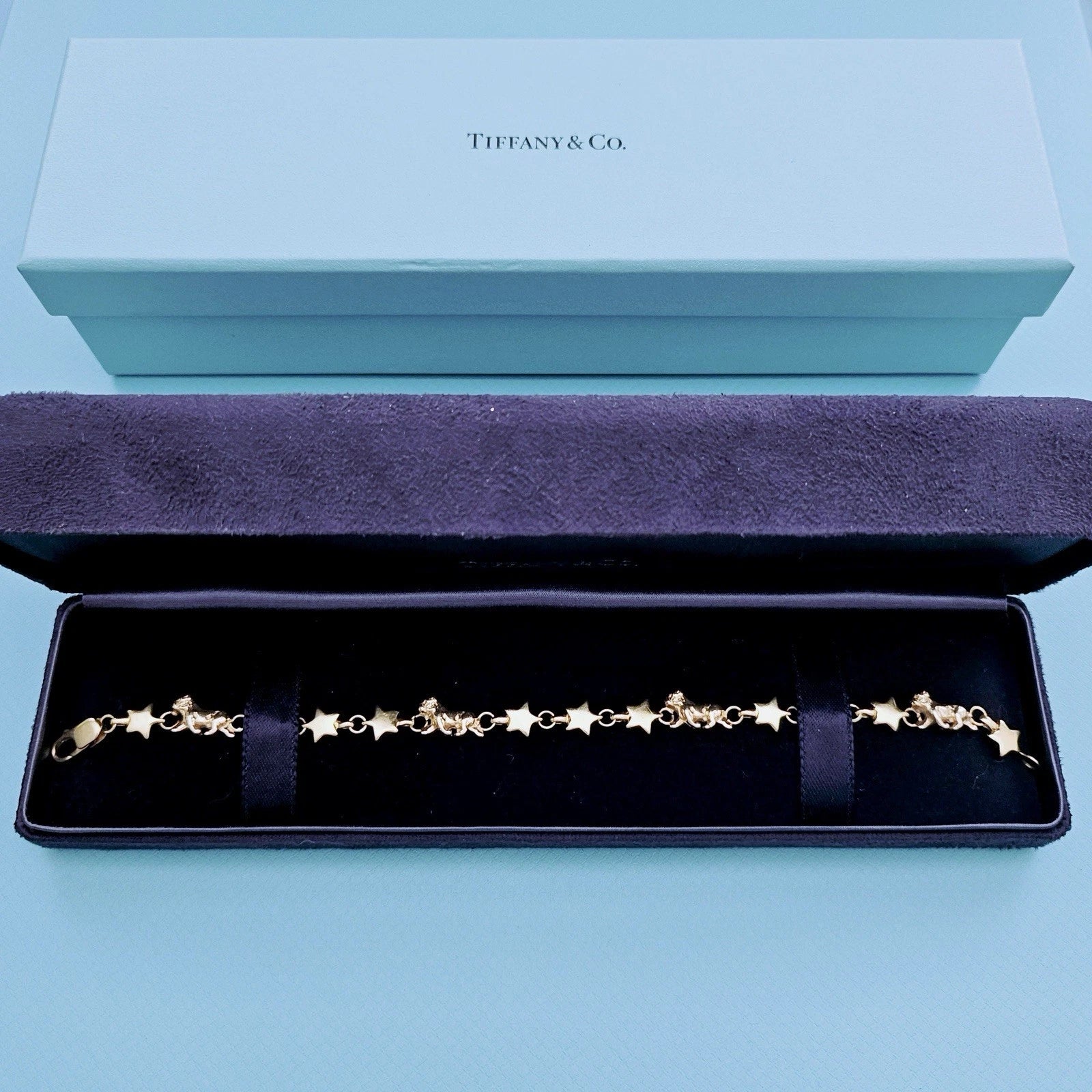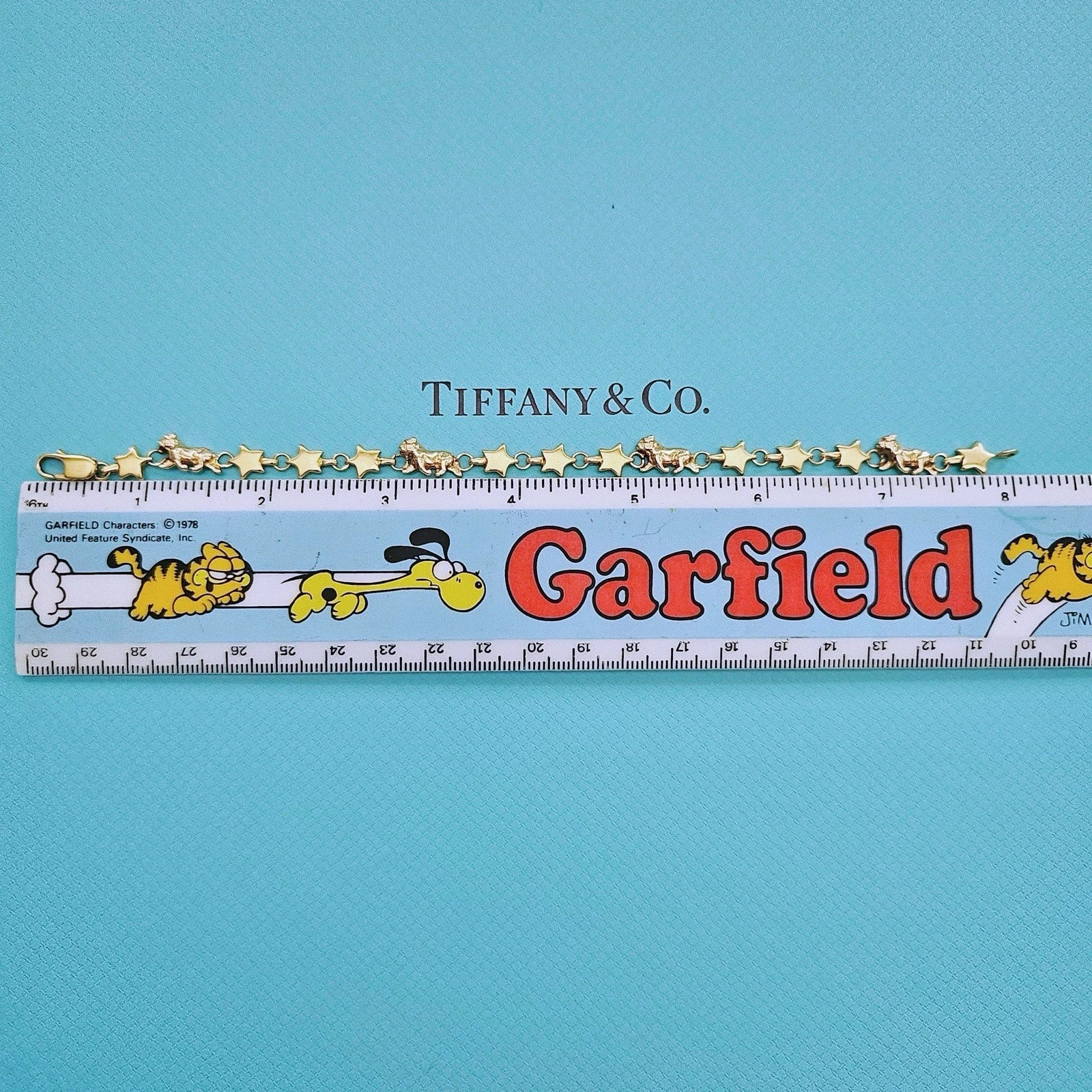 This one-of-a-kind vintage Tiffany & Co. bracelet is an extremely rare and hard-to-find piece. While similar styles featuring continuous puffed stars, hearts, or bows can occasionally be found, this bulldog design is truly unique - I’ve never seen another like it. The original chain appeared in Tiffany’s 1990s catalog under the name “Chain of Stars.” Given its rarity, I believe this bulldog version may have been a special made-to-order piece.