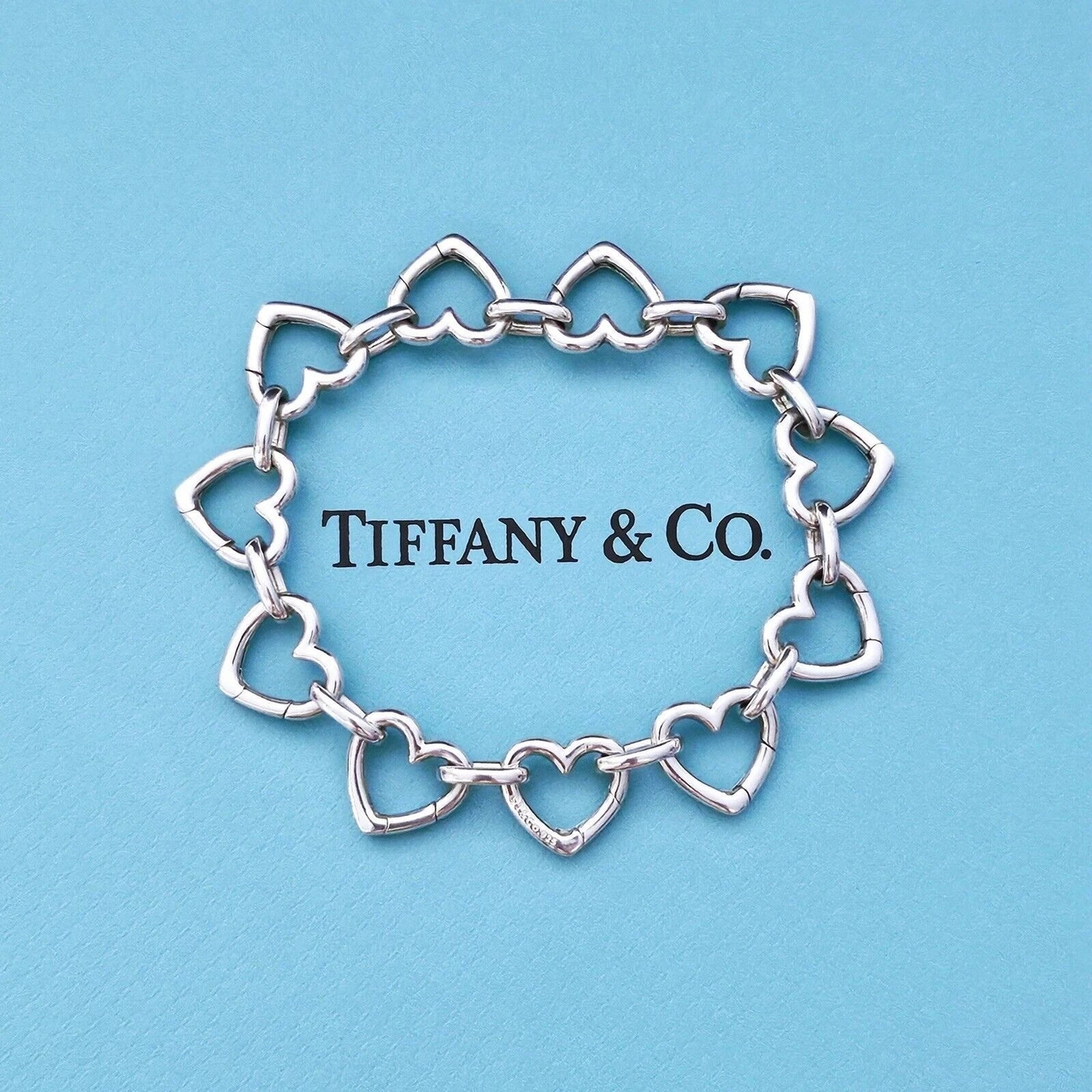 ULTRA RARE and sought after Tiffany & Co. Multi Heart Clasping Link Silver Bracelet.