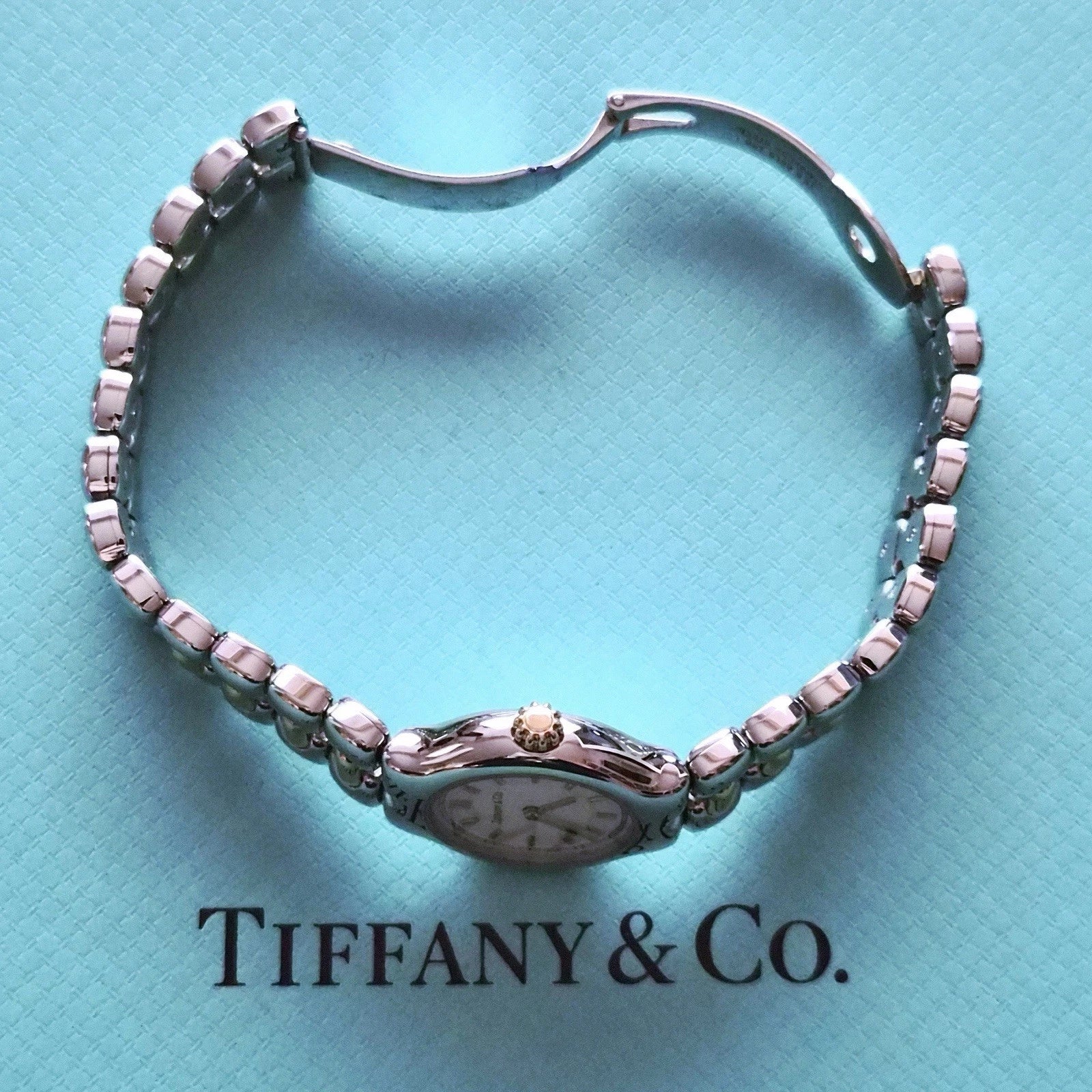 This is a beautiful vintage 1992 Tosoro Tiffany & Co. watch. A timeless classic blends luxury and precision in a sophisticated 2-tone design. Crafted from stainless steel with 18k yellow gold accents, this is both refined and versatile, perfect for everyday wear or special occasions. Its subtle branding and minimalist dial reflect Tiffany's signature understated elegance, making it a standout piece for collectors and style enthusiasts alike.